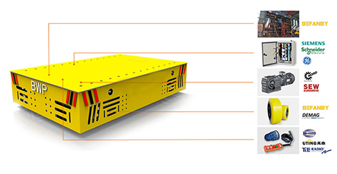 BWP:無軌電動平板車是一種以蓄電池作為電源,電機減速機作為驅動系統,實心包膠車輪直接在地面行走的轉運車,其運行不受限制,進口的車輪保證地面不受損壞,360°原地轉彎適應更狹小的空間運行,360度無死角防護、遇人自動停止等功能,保證了運行過程中的阻礙問題。觸摸屏、搖桿操作等設計使操作更加人性化。